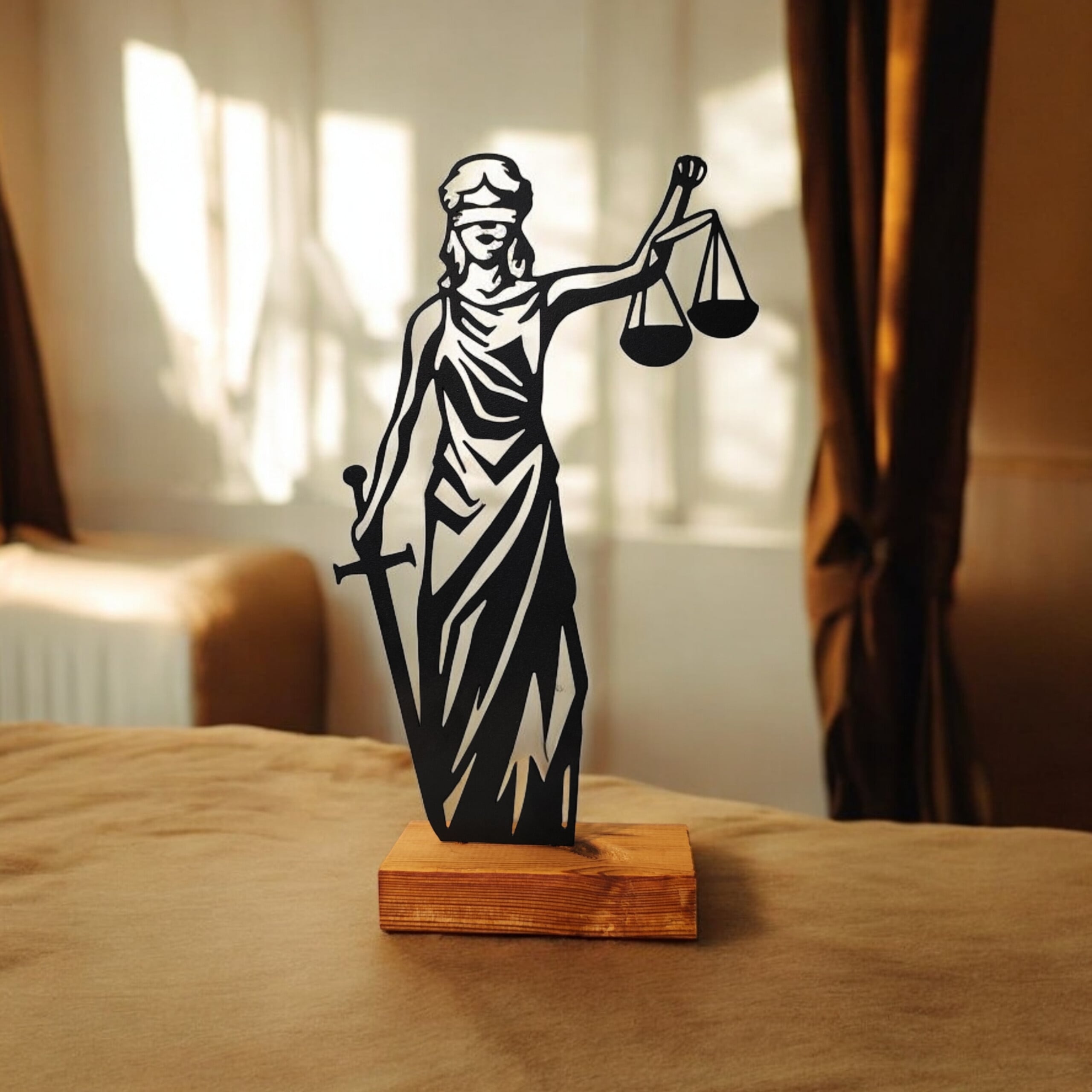 تندیس مینیمال طرح بانوی عدالت نیتا متال ، محصولی جذاب و اقتباسی مناسب قرار گرفتن روی میز و یا شلف دیواری بوده و از پایه چوب طبیعی و طرح آدمک با پوشش رنگ کوره ای تشکیل شده است. این محصول یکی از اجزای دکوراسیون مینیمال و ترکیب چوب و فلز می باشد.